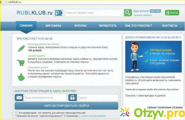 Хочу поделиться своим мнением от заработка в Rublklub. Гуляя по просторам интернета в поисках очередного легкого заработка, наткнулась на отзыв о сайте. Очень уж мне нравится проходить опросы, а тем более за них еще и вознаграждение дают неплохое.
