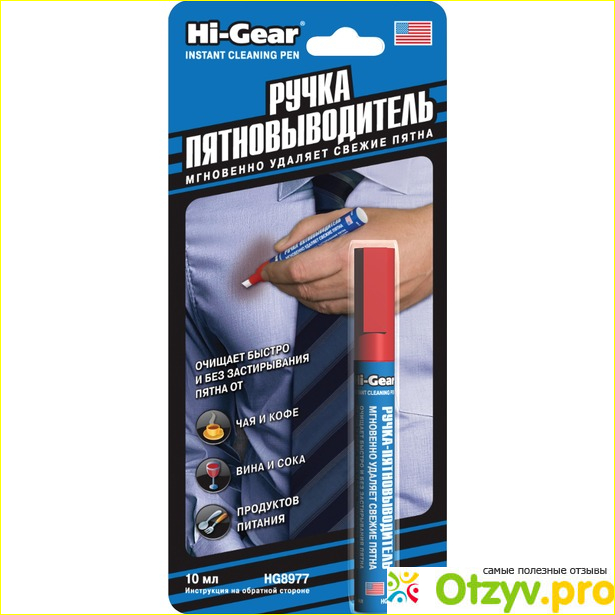 В продаже не так давно появилась специальная ручка-пятновыводитель. которая стала быстро набирать популярность среди покупателей в интернете. По словам производителя данная ручка способна творить чудеса, так как она легкими движениями выводит даже самые стойкие пятна. Называется это средство Hi Gear HG 8977.