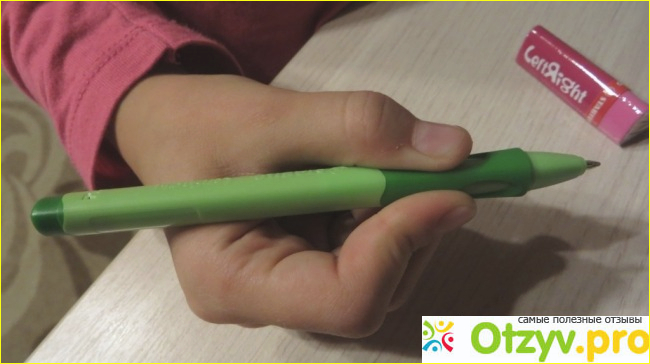 Идея производства ручки стабило очень интересная и продуманная. Но в этом году столкнулась на уроках с проблемами. Не всем детям удобно пользоваться этой ручкой. Пальчики соскальзывают из отверстий-дырочек. Ручка широкая. Дети от любопытства легко отдирают покрытие- резину. Паста- тушь очень тёмная, бывают потёки. Многим пришлось поменять шариковую ручку на новую.