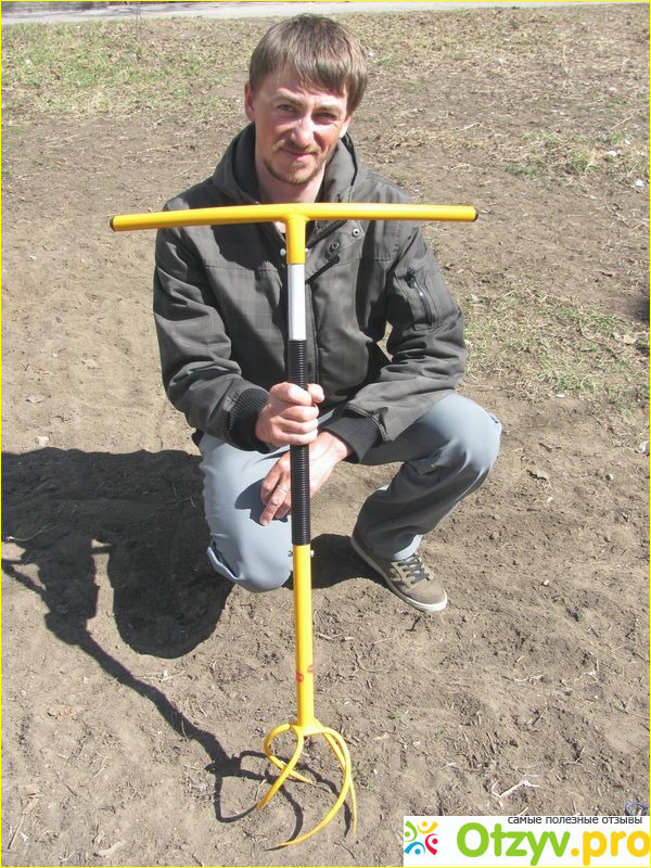 И решили приобрести это чудесное приспособление. И остались с ним очень рады, так как очень удобно и качественно им можно работать. Очень хорошо выворачивает землю. Вытаскивает полностью все сорняки с корнями. Удобно сажать им огурцы, помидоры, баклажаны, картофель , так как очень хорошие получаются лунки. Ни надо большого физического труда наносить. Жена лично им приспособилась сажать цветы. Даже внук 15 лет смог преодолеть это орудие труда. Купить вы его можете лучше заказать по интернету и с доставкой по всей России. Сам метал очень крепкий и не гнется. Качественно работа происходит с землей и не занимает много мест в сараи. Считается он как корнеудалитель делать быстро и качественно. Все знакомые мои купили это чудо технику и вам советую. Цена очень доступна от 1000 до 1500. Все зависит, с каким приспособлением вам нужно. Ставите инструмент вертикально. ни каких сильных усилий он не требует. Проворачиваете и выдергиваете. И сорняк вылазет с корнем полностью. Хороший помощник в любых сложных ситуациях.