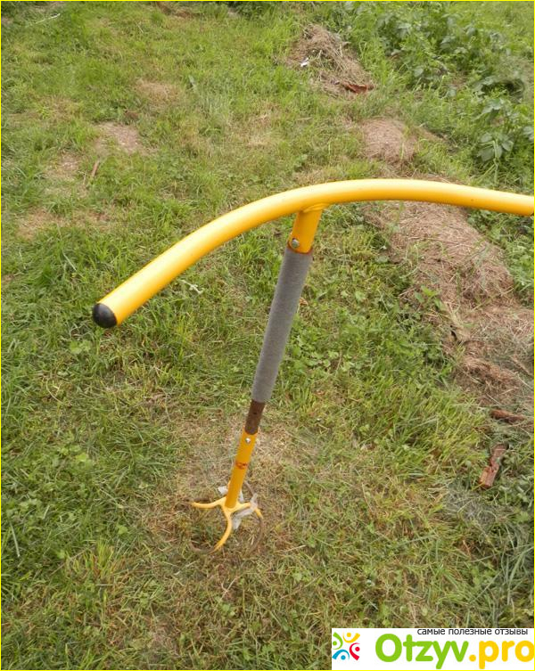 Высота ручки удобная – 88 см, а зубья закреплены по окружности 8 8 см.