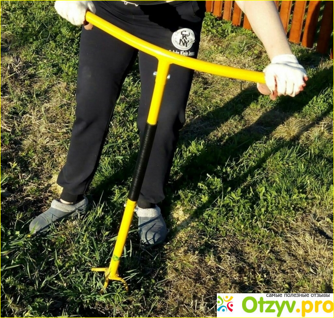 Приспособление разработано специально для удаления сорняков вместе с корнями. Его иногда так и называют – "корнеудалитель". Производится в городе Брянске.