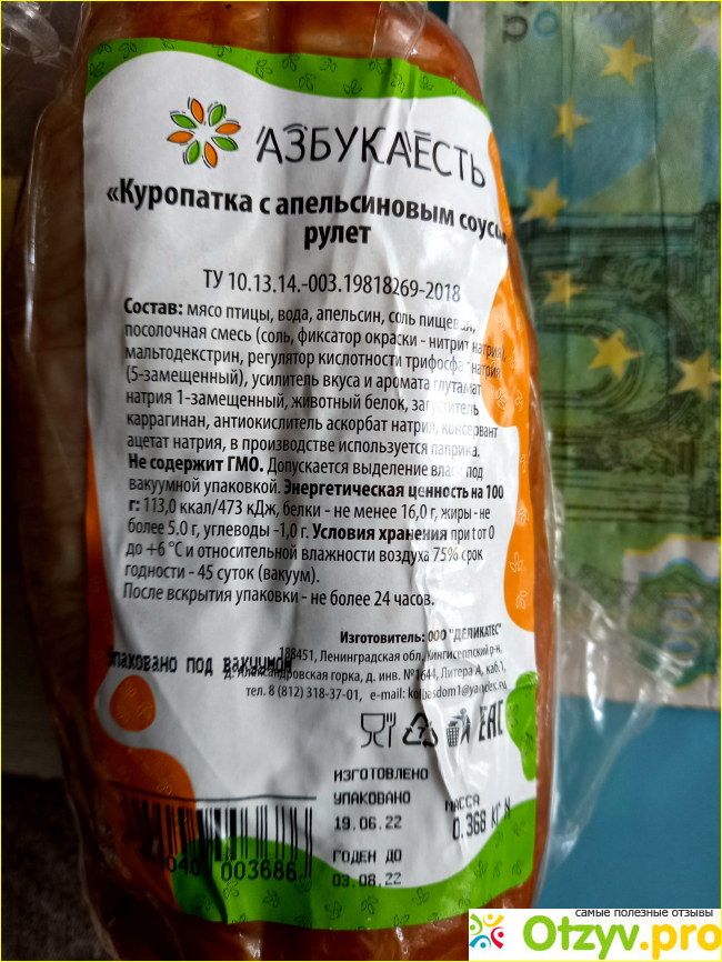 Вот только состав совсем не порадовал. Куропаткой там и не пахнет, что за птичье мясо входит в состав этого рулета, из описания не выяснить.