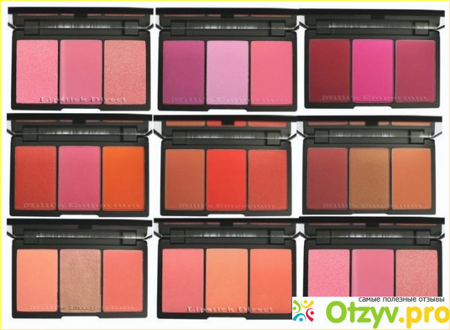 В каждой палетке с румянами вы найдете три разных цвета, которые вполне можно сочетать между собой. а так же ими можно пользоваться каждым по отдельности. По этому очень удобно ведь за один раз вы приобретаете три цвета отличных румян.