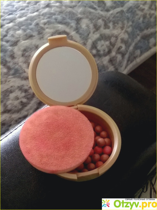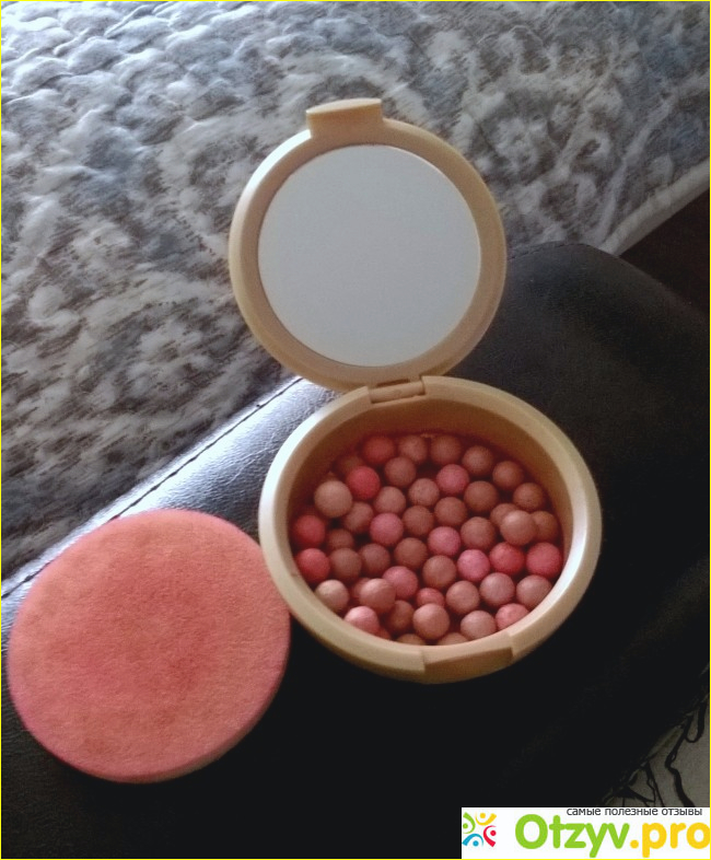 Упаковка симпатичная, довольно классическая, с зеркальцем, со спонжем (я так поняла он больше для того, чтоб шарики никуда не выкатились :)), открывается легко, легкая, удобно брать с собой. При открытии шарики не выпадают, всё очень аккуратно и практично сделано.