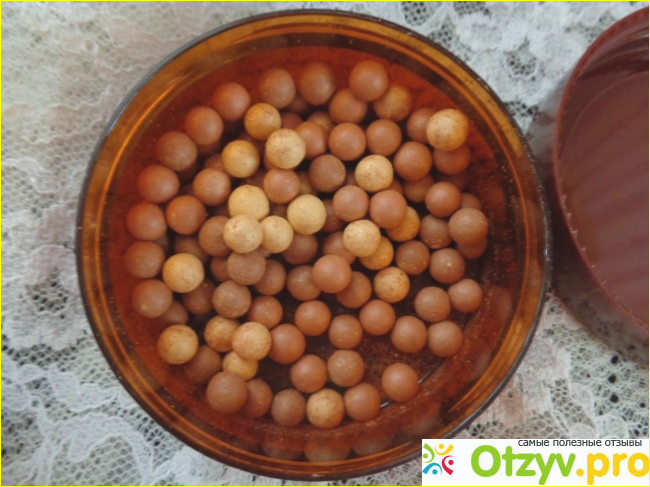 Шарики обещали эффект смуглой кожи. В коробочке с закручивающейся крышкой 22 грамма таких шариков, сверху поролон для защиты. Позже я выяснила, что это румяна, а не пудра. Помню, мне не понравился резкий запах, потом он, к счастью, выветрился. Шариков в коробке чуть меньше, чем пол коробочки, но они достаточно экономичные. Всего 3 цвета шариков- растяжка от коричневого до желтого. Попробовала нанести их на лицо и была приятно удивлена. На моем загорелом лице эти румяна смотрелись просто отлично, подчеркивая загар. Имеют светоотражающие частицы, благодаря которым румяна дают потрясающий эффект- кожа как бы светится. Я считаю, что как пудра этот продукт, конечно, не подойдет- слишком красящие пигменты, но вот как румяна- отлично. Совет: если вдруг румяна в шариках плохо наносятся на кисть, попробуйте растолочь несколько шариков. Прошел уже год, но румяна и не думают заканчиваться!