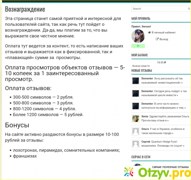 Чтобы зарабатывать на нем, нужно писать отзывы о компаниях, сайтах, сервисах, магазинах, учебных заведениях, и все в этом стиле.