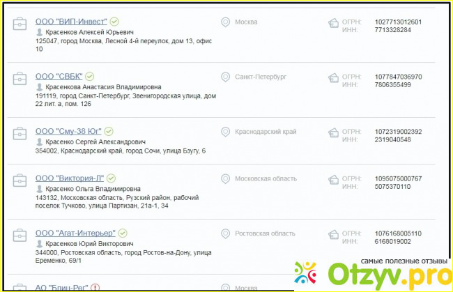 Допустим, вы хотите найти предприятие по фамилии руководителя. Вы знаете, что его зовут Красенков. Вы пишите имя и вуаля.