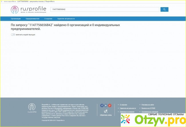 Если вы ищите хороший проверенный ресурс на котором можно найти актуальную информацию про существующие и уже не работающие компании то я рекомендую всем сайт Rusprofile.ru . Я очень рад, что сегодня на просторах российского интернета начали создаваться по настоящему полезные и качественные сервисы, целью которых является не только заработать как можно больше денег, но и действительно помочь людям найти хорошую и полезную информацию.