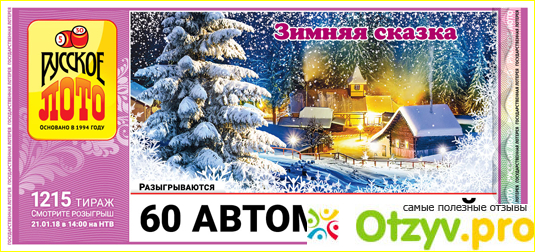 Отзывы о лотерее Русское лото самые разнообразные, люди пишут, что это лохотрон, другие наоборот верят что обязательно выиграют и покупают лотерейный билет! Хочу рассказать о своем опыте. Я иногда покупаю на почте на сдачу один - два билета, хочу сказать что проигрываю редко! В основном мой маленький выигрыш сто - двести рублей! Конечно бывает что и ничего не выиграю! А вот муж мой покупал на праздничный розыгрыш пять билетов и ни один не выиграл и рубля! Стало как-то неприятно хоть бы один выиграл ! Друзья покупают на сайте и пока ничего не выиграли! Редко, но все таки я покупаю три лотерейных билета, а два из них выигрышные, только прибыли нет( получается что просто поиграла беесплатно! На новогодний розыгрыш у нас было два билета, выиграл один 103 рубля! Мы смеялись, что хоть один отбили обратно! Хотя я лично знаю человека, который выиграл 400000 рублей, причем он покупал билеты на сдачу 2 штука, остался 1 и оператор уговорила купить его! Человек купил и выиграл, он был просто в шоке! А покупал он лотерейные билеты после меня с разницей в два дня, причем в том же отделении, где покупаю и я! После этого случая я стала чаще покупать лотерейные билеты Русского лото! Выигрыш можно выиграть в самый неожиданный момент! Я не покупаю как сумасшедшая лотерейные билеты, но периодически мы играем всей семьей! Я одна из огромного числа людей кто верит, что можно выиграть в лотерейный билет! Я бы не покупала если бы не знала реального человека выигравшего приличную сумму!