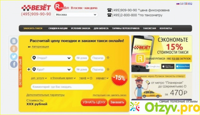 Адрес сайта расположен по адресу: rutaxi.ru. Но вот в Москве данная контора работает под названием такси Везет. Я уже не первый свой отзыв оставлял на данном сайте о качестве их работы и мой случай произошел еще в прошлом году, когда мне в дикий мороз приходилось на улице ждать свой заказ. Так получилось, что у меня не было российской сим карты, поэтому воспользовался приложением 2 ГИС и выбрал первое попавшееся такси.