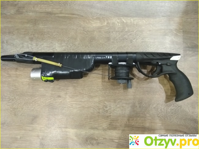 И вот я уже бегу на почту! Ружье превзошло все мои ожидания. В руке лежит как влитое, ствол достаточно увесист, материал ствола - алюминий. В комплекте: ружье, насос, заряжалка, гарпун Д-8мм, наконечник (вполне рабочий!), монолинь (непонятно, почему производитель решил положить в набор именно монолинь, а не веревочный линь, как в самых первых партиях). Я установил на ружье катушку OMER match sport, подствольный фонарь и компенсатор плавучести на ствол. Так вот боковой линесбрасыватель револьверного типа расположен сверху рукояти, позволяет аккуратно укладывать линь вдоль ствола, и не мешает ни катушке ни фонарю, установленному на ружье (линесбрасыватель достаточно емкий, для любителей намотать побольше витков линя, при использовании ружья без катушки). Ушки линесбрасывателя толстые. Вообще, весь пластик очень качественный и прочный. Качество сборки и составляющих выше всех похвал. Ход курка очень плавный. Скоба спускового крючка большая! в самых толстых перчатках пальцу комфортно и свободно. Раньше я пользовался арбалетом. Так вот подброс, в результате выстрела, у данного пневмата после арбалета (как извествно, у подводного арбалета замкнутая система сил и подброс ствола отсутствует впринципе) практически не ощутил. Любую рыбку беру при заводской накачке (около 26кг). Несмотря на полую рукоять, рука не стынет. В первый после приобретения ружья сезон охоты, осенью (в октябре) нырял в Волге в 5мм перчатках — рука подмерзла только в конце охоты. И уж точно, полая рукоять на замерзание руки повлияла в последнюю очередь). К слову, средняя длительность моей охоты составляет 3-5 часов. Рукоять полая для того, чтобы при нахождении ружья в толще воды без гарпуна, оно всплывало вверх дулом, тем самым избегая попадания ила и грязи в ствол. Гарпун в стоке имеет диаметр 8 мм! Есть на ружье одна классная фишка- адаптируемый надульник, то есть, при желании можно купить 7 мм-гарпун. Касательно внешнего вида — ИМХО дизайн стильный, и название подходящее. Настоящий хищник! Однозначно рекомендую ружье к приобретению, из Итальянцев (да-да, это не пресловутый италокитай, а именно Итальянец чистой воды! Все стадии производства ружье проходит на одном и том же заводе в Италии) Salvimar Predathor - лучший вариант!