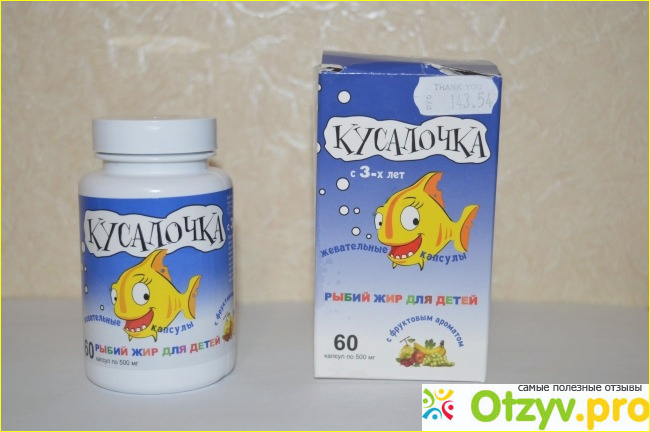 Придя в аптеку, мне дали имеющийся в наличии специальный рыбий жир для детей под необычным названием "Кусалочка". Предназначен он для детей от 3 лет и если внимательно прочитать инструкцию, то это же средство можно и взрослым, там даже дозировка есть. Не является лекарством, - это биологически активная добавка к пище, попросту БАД. Прежде чем пить это средство, я спросила мнение педиатра, она одобрила.