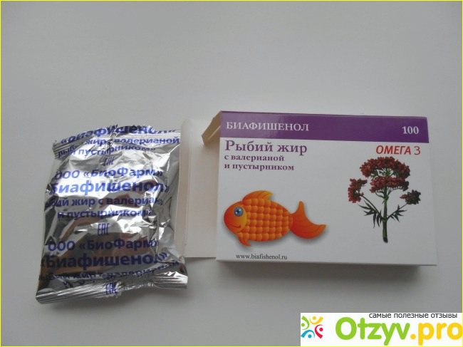 Рыбий жир источник омега-кислот, которые просто необходимы для нормальной работы сердца и сосудов. Также немногие знают, что рыбий жир полезен для профилактики ОРВИ и укрепляет иммунитет лучше, чем витамин С. Прекрасно регулирует гормональный фон, что актуально для прекрасного пола. А валериана и пустырник благотворно влияют на нервы и настроение. Многие утверждают, что с помощью рыбьего жира можно немного сбросить вес, ногти и волосы выглядят лучше.