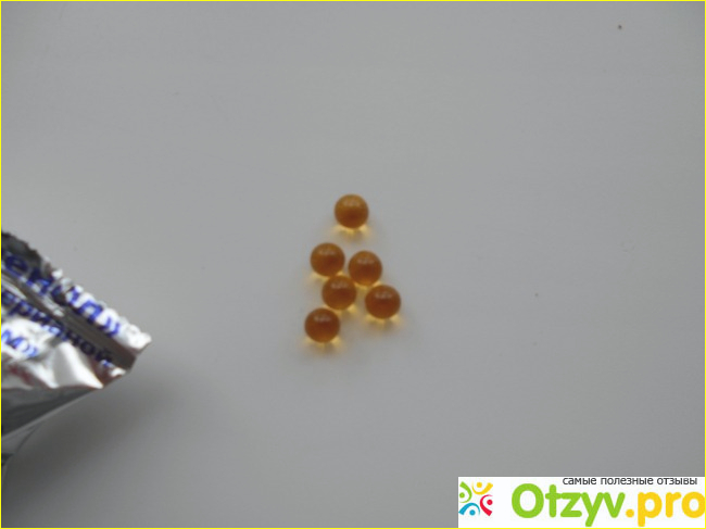 Капсулы совсем небольшие, ярко-янтарного цвета, упругие на ощупь.