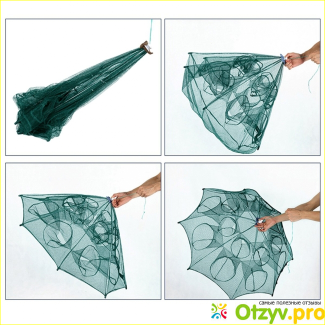 «Ставлю такую на раков. Благодаря 9 входам удается поймать много живности. Удобно, что она объемная с высоким куполом, по время пребывания в воде он не провисает. Наживка хорошо закрепляется. В целом получается от килограмма улова в плохой день. А если повезет, то и все четыре», - Олег.
