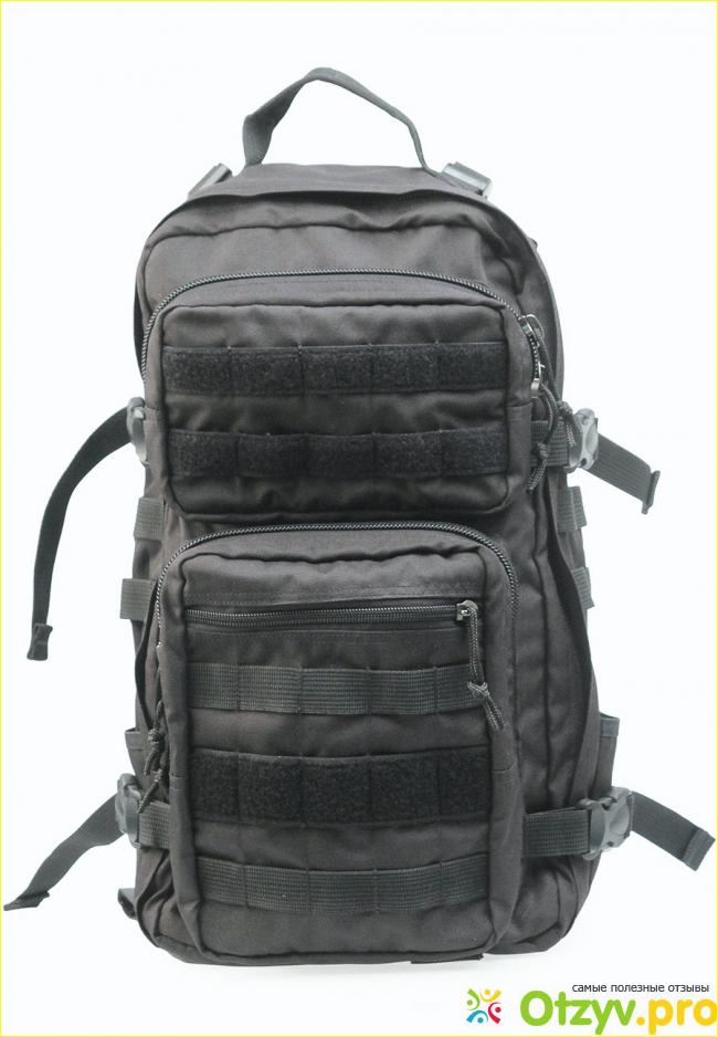 Подробнее- множество карманов, есть два больших на молнии, съемный пояс из широченной стропы, с боков утяжки, на лицевой поверхности липучки.