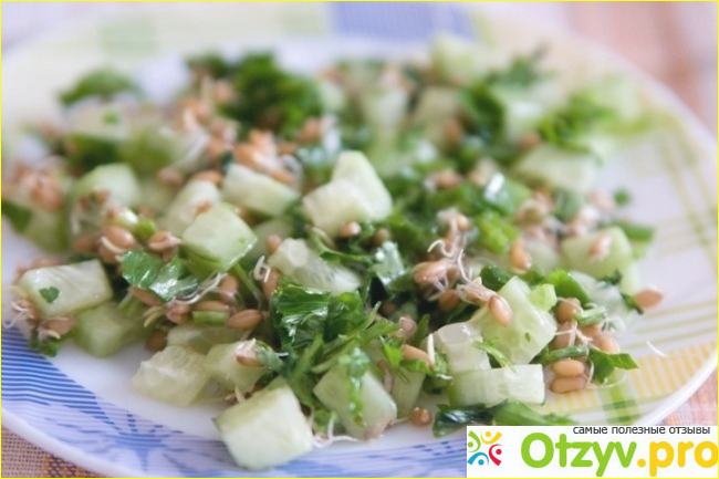 если вы привыкли получать удовольствие от приема пищи, рада предложить несколько салатов из пророщенной пшеницы.