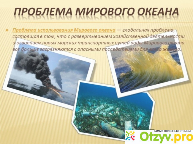 Человечество и корпорации за счет своей алчности готовы разрушить планету. В мировой океан сливаются токсичные отходы, слабо развитые народы, живущие у океана загрязняют воды мусором, производится бесконтрольный, промышленный лов рыбы, при котором погибает огромное количество обитателей океана. Известно о целых плавучих островах мусора, перемещающихся по водной глади. И это очень тревожный сигнал. Постоянный рост населения земли и увеличение потребления приведет к разрушению структуры океана, к его загрязнению.