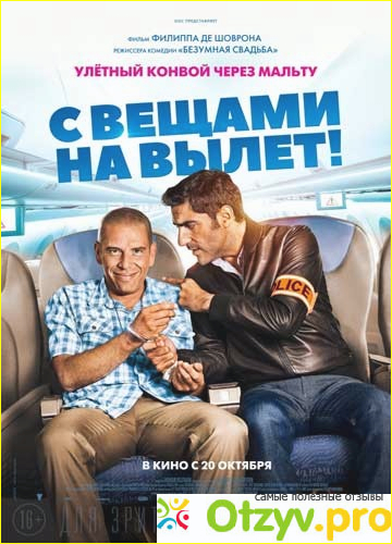 Новая французская комедия, режиссера Филиппа де Шоврона, которая называется "С вещами на вылет!" (2016), сюжетная линия. По сюжету коп Хосе Фернандес, экстрадирует эмигрантов из Франции он идет на повышение, но надо закончить последнее дело: переправить зека в Кабул, но казалось бы легкое дело принимает другой оборот, когда их сомолет совершит аварийную посадку в Мальте. Хосе принимают эмигранта и он с зеком бежит. И вот настало время, я немного прервусь от темы этого отзыва: «Новая французская комедия, режиссера Филиппа де Шоврона, которая называется "С вещами на вылет!" (2016), сюжетная линия. » и подвожу Вас дорогие мои читатели к самой главной теме этого отзыва: «Новая французская комедия, режиссера Филиппа де Шоврона, которая называется "С вещами на вылет!" (2016), музыкальное сопровождение. ».