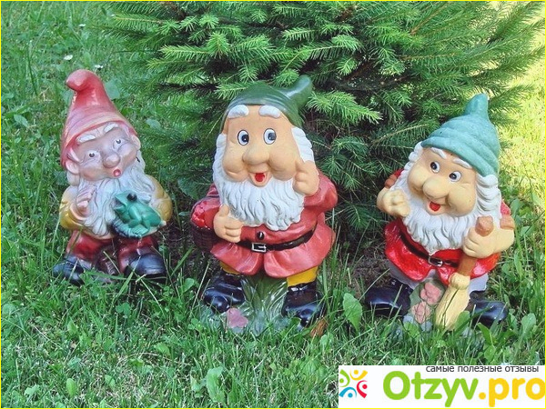 Такие фигурк не боятся влаги, поэтому когда на улице пошёл дождь, не бойтесь, с Вашими гномиками и собачками, ничего не случится.