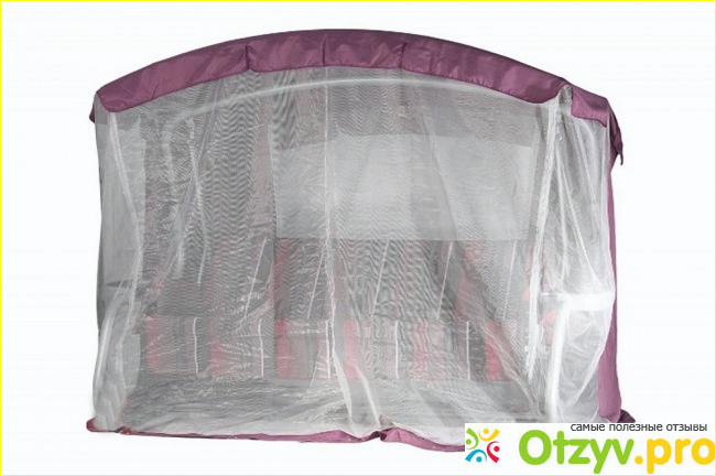 Считаю данную модель оптимальной в соотношении цены и качества. Матрас легко снимается и убирается на время дождя, а вот козырек с москитной сеткой пришлось снимать вдвоём.