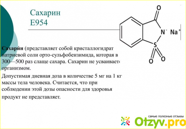 Данный синтетический заменитель сахара имеет за своим плечами долгую историю. Его пытались запретить, активно популяризировали и в конечном итоге он занял свою определенную долю на рынке. Сахарин имеет коэффициент сладости в 300 раз больше, чем у сахара. Производить же его гораздо дешевле и легче чем другие подсластители. Продаются упаковки, где 1200 таблеток стоят 200 р. По этой причине вещество по-прежнему активно используется и применяется во многих продуктах и медицинских препаратах. Но несмотря на то, что он абсолютно безопасен для здоровья, не стоит превышать стандартную суточную дозировку данного препарата. Лучше не использовать больше 3-6 таблеток в течении дня.