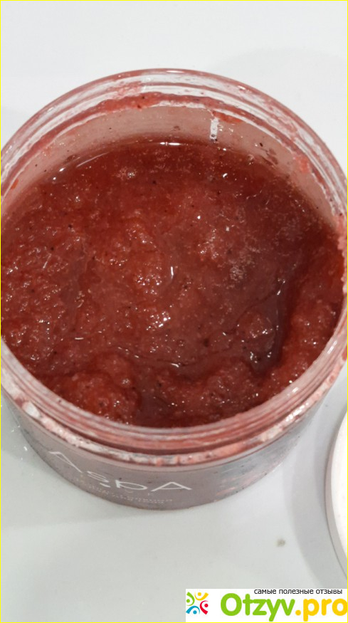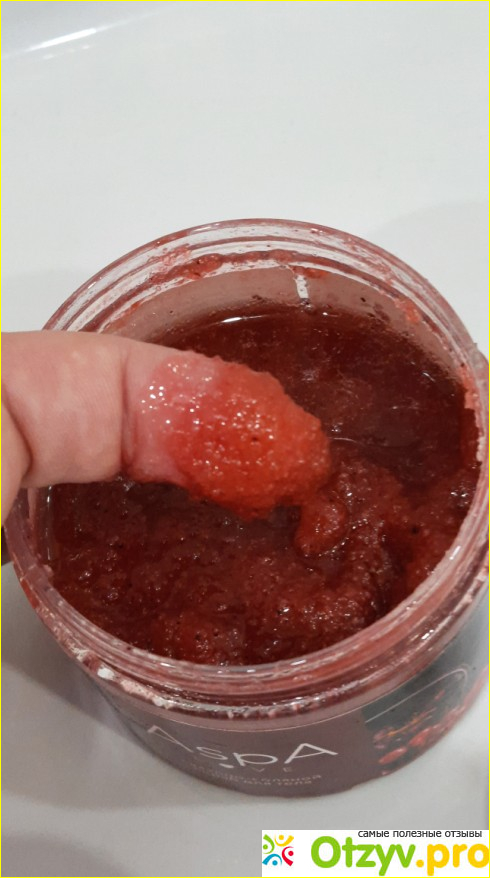 Скраб не грубый, массирует кожу эффективно, но деликатно. Не царапает, не повреждает кожу, но ороговевшие частички (особенно после загара) очищает прекрасно. Постепенно крупинки соли и сахара на коже начинают таять, а вот крупинки косточек отлично массируют. После его использования ощущение, как после хорошего спа салона. Кожа становится просто необыкновенная.