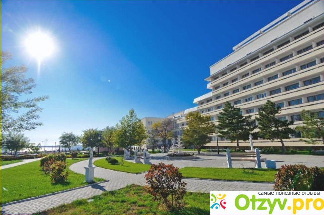 Сам санаторий нам очень понгравилось, прежде всего впечатлило, что было просторно, чисто и очень комфортно. Причем это касается всего – и самой территории и коридоров в здании и номера, в котором мы поселились. В санатории везде чувствуются элементы греческого стиля – скорее всего тут было при строительстве определенным образом что-то позаимствовано у греков. На территории много зелени и цветов, - вообще видно, что озеленению тут уделяется довольно много внимания. Как раз недавно территорию санаторя отреставрировали и мы считай были в числе первых постояльцев, что конечно было очень приятно. Отдыхающих было не очень много наверное чуть более 50 человек, за время отдыха все примелькались и мы уже всех знали в лицо. Сам персонал в этом заведении тоже приветливый, все время интересовались, все ли у нас нормально, нет ли каких жалоб.