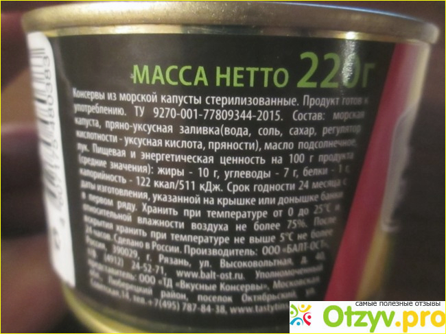 Что странного? Весит 220 грамм, лучше бы 250, куда 10% веса дели? Сделано по ТУ, а почему не ГОСТ? Состав вроде бы нормальный - капуста водоросль и заливка
