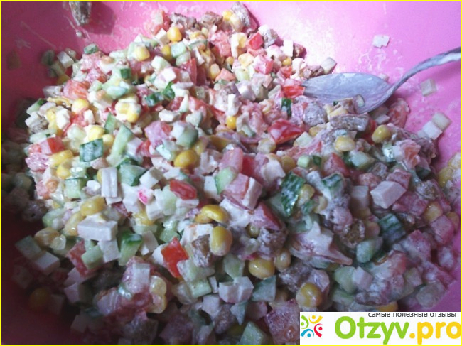 Вкус этого чуда даров природы и человека заставляет забыть о любых наименованиях. Он очень вкусный, свежий и употребляется в безмерных количествах. Я сама, как мне кажется «заточила» половину тазика этого салата.