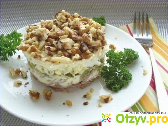 - яичный слой присыпьте поджареннымигрецкими орехами (майонезом больше не покрывайте)
