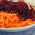 В таком салате очень большое количество клетчатки, очень нужной для нашего организма. Для его приготовления я беру по 200 граммов сырых яблок, белокочанной капусты моркови, свеклу, многие еще добавляют морскую капусту, но я попробовала с ней, получилось не очень. Все натираю на крупной терке и заправляю небольшим количеством растительного масла и сбрызгиваю соком лимона. Соль туда не добавляю.