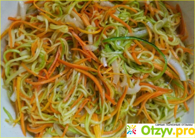 Кабачок так же нужно натереть, чтобы было красиво, аналогичной тёркой.