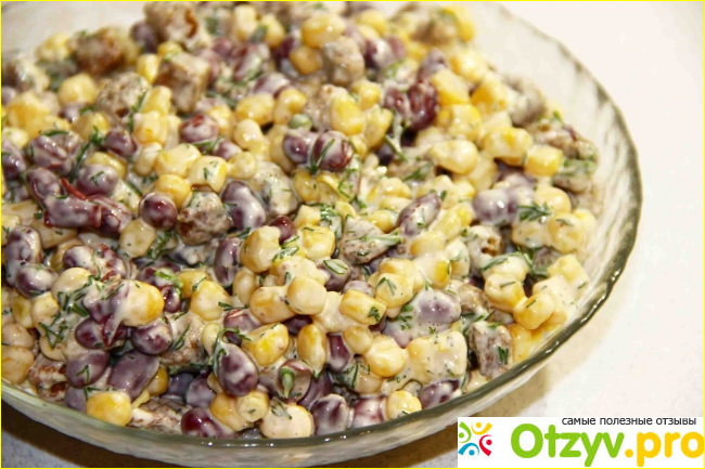 Потом смешиваются с кукурузой и фасолью. В качестве заправки идеально подойдет наш любимый майонез.