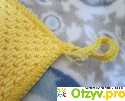 Края по всему периметру салфетки качественно обработаны. Предусмотрена петелька, чтобы можно было ее подвесить и просушить.