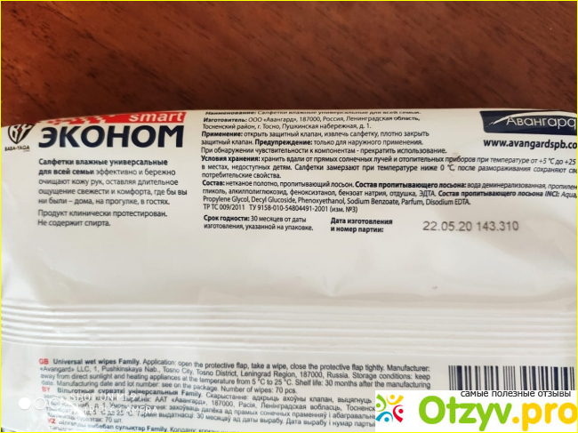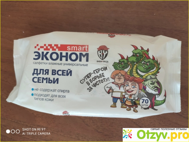 В применении салфетка оказалась, не очень влажной, в отличие от некоторых марок, которые пенятся. На коже увлажнение держится недолго , 2-3 минуты Запах приятный- легкий цветочный. Иногда использую салфетку для протирания деревянных и пластмассовых поверхностей, тоже подходит, следов не остается.
