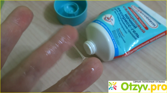 Гель очень не приятный по своей консистенции. Это какая-то гелевая субстанция, тягучая и которая при нанесении на кожу создает ужасный липкий эффект на поверхности кожи. В последствии, как липкость проходит, на коже появляется пленочка и чувствуется неприятная стянутость кожи. Если же переборщить с нанесением этого средства на кожу, то оно просто начинается скатываться. По ощущениям это как будто какое то желе неприятное на лицо наносишь. Он даже тянется на коже, это вы можете заметить на фото. Расход этого геля очень не экономичен, но для меня это оказалось не критично так как использовала всего несколько раз и попрощалась с этим средством.