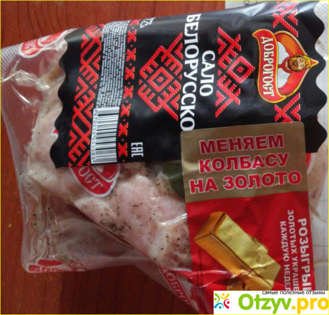 Специй в меру ни много, ни мало. Есть мясная прожилка, что не всегда встретишь. Корочка хорошая, не твердая. обработано аппетитно. Запаковано в вакуум, а это тоже говорит о заботе о покупателе. Это и гигиенично и правильно для перевозок. когда берешь в руки такой продукт и не важно что он из эконом сегмента понимаешь. такая компания думает о каждом своем продукте и о дорогом и о дешевом. Именно по тому как относиться компания к дешевому продукту и можно судить что они работают на совесть. Ведь дорогую колбасу легко сделать привлекательной, а тут просто кусок сала. Но как будто муж дома сам посолил и отрезал красиво и о корочке подумал и специй много не положил. Некоторое сало и в рот нельзя взять пока не смоешь с него весь перец. А тут сразу видно заботятся о своем имидже. Я колбасу тоже Доброгост покупаю, потому что она всегда свежая. Из Белорусского сала Доброгост я делаю бутерброды или перемалываю его на мясорубке и делаю пасту, добавляю его в фарш. котлетки становятся очень пикантными сразу и мягкими. Побольше бы таких натуральных продуктов. Рекомендую всем это действительно простое обыкновенное сало. Каким оно должно быть. Натуральное и вкусное.