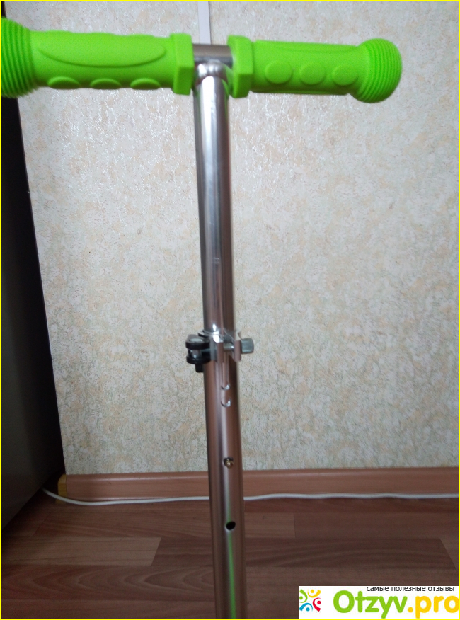 Рекомендую приобрести самокат. Мы это успели сделать ещё вчера. Желающих купить его для своих деток оказалось много людей. Мы были в детском магазине рич фелеми. Выбор там большой. Но мы выбрали по акции и средней цене. Обошёлся нам самокат всего за 890 рублей. Цена доступная для покупки. Самокат подайдет для деток с 2 лет. Мы для сына покупали зелёного цвета. Также он будет актуален и на следующий год. Все из-за того что на нем есть регулятор раста рулевого управления. 3 положения. Основание сделано у самоката из сплава алюминия. Это руль, который имеет два наконечника по краям. Они изготовлены из резины, чтобы ребёнок мог безбоязненно держаться и руки скатывались. Ещё удобно в ручках, что они не дадут рукам замёрзнуть при неожиданной смене погоды.