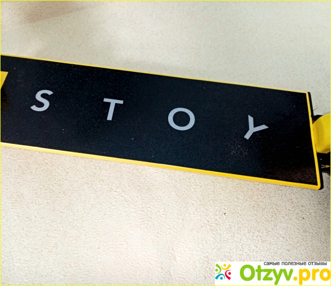 Что мне очень понравилось - платформа у самоката тоже антискользящая! На ней имеется логотип торговой марки, она в меру удлиненная и ее легко мыть.