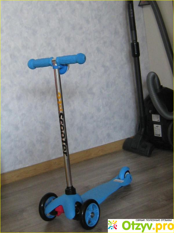 Первоначально эта модель не была предметом выбора, и хотелось купить что-то более интересное и более крутое, а также то что будет и более долго служить. Но в итоге самокат выбрала сам ребёнок, который его увидел и сразу сказал что хочет именно его. Выпускается этот самокат в нескольких цветах, в зелёном, голубом, оранжевым, розовым. Мы выбрали классический голубой цвет. Чисто внешне самокат выглядит довольно солидно и надежно. На ручках его предусмотренные рифление, таким образом ребёнок его будет надежно фиксировать и связи с этим довольно устойчиво держаться когда будет кататься. После того как мы купили самокат, мы его немножко усовершенствовали и установили на ручку полицейский сигнал.
