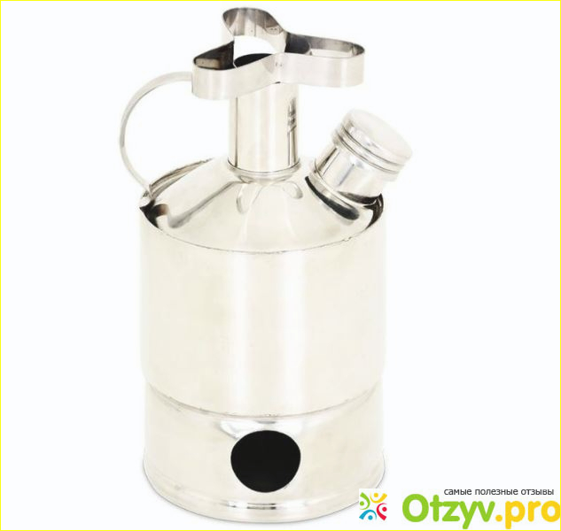 Как я поняла, этот туристический прибор пользуется особой популярностью перед каждым туристическим сезоном. Выпускается он челябинским заводом бытовых товаров, специально для людей, которые любят охотиться, ездить на рыбалку или просто для туристов-фанатиков. Также это устройство заинтересует и просто любителей экстремального вида отдыха. Хотя, если вы любите ездить куда-нибудь на природу или на море диким туристом или предпочитаете кемпинговый вид отдыха, то такой самовар вам будет также интересен. Штука довольно простая в освоении и не требует какого-нибудь специализированного топлива, чтобы разогреть воду. Чтобы довести воду до кипятка, хватает и подручных мелочей в виде веток, коры, шишек и прочего мелкого топлива, которое всегда есть под ногами где бы на природе вы ни находились. Этого вполне хватает, чтобы накипятить чаю, или разогреть, а также приготовить пищу.