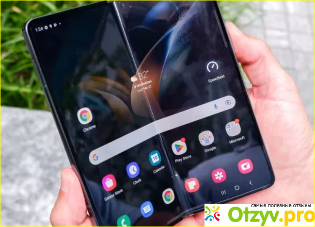 Samsung Galaxy Fold 4 обладает такими возможностями благодаря тому, что в нем предусмотрен 7,6-дюймовый дисплей, он гибкий, поэтому легко увеличивает экран. В разложенном виде, когда мы смотрим видео или фото, то практически не заметна линия, где сгибается экран. А со временем вообще не обращаем на нее внимание. Цветовая передача отличная, качество картинки получается очень хорошим. А в сложенном виде телефон легко помещается в кармане и можно его брать комфортно с собой. Помимо того, что экран берет преимущество своим размером, телефон еще и имеет отличную производительность. Так как внизу экрана можно настраивать панель в то время, как в верхней части вы можете смотреть что-то свое. Что касается мощности, Z Fold 4 оснащен лучшим мобильным процессором, поддерживаемым 12 МБ оперативной памяти.