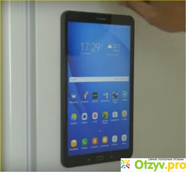 Это очень удобно на кухне, когда вы готовите пищу и хотите смотреть ваш любимый сериал. Тогда вы прицепляете планшет на холодильный на нужной высоте и смотрите, а на экране можно регулировать и громкость и другие параметры только лишь одним прикосновением пальца. Правда о такой возможности сам производитель не заявляет, а это является как бы дополнительным преимуществом вне основных достоинств. Т. е. планшет можно использовать на кухне по разному и в разных ракурсах, а это значительный плюс для домохозяек.