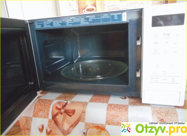 Из плюсов скажу так, красивый дизайн, белая, стильная с аккуратными кнопочками, легко моется но может это потому что ей пока два месяца не знаю со временем будет видно, а пока посчитаем это за плюс. Режим энергосбережения, с нашими цена за свет это действительно важно. Множество рецептов и способов приготовления, но я не когда так не готовила и не попросту времени в это все вникать, но а для тех кто умеет и любит готовить в микроволновой печи тогда будет интересно.