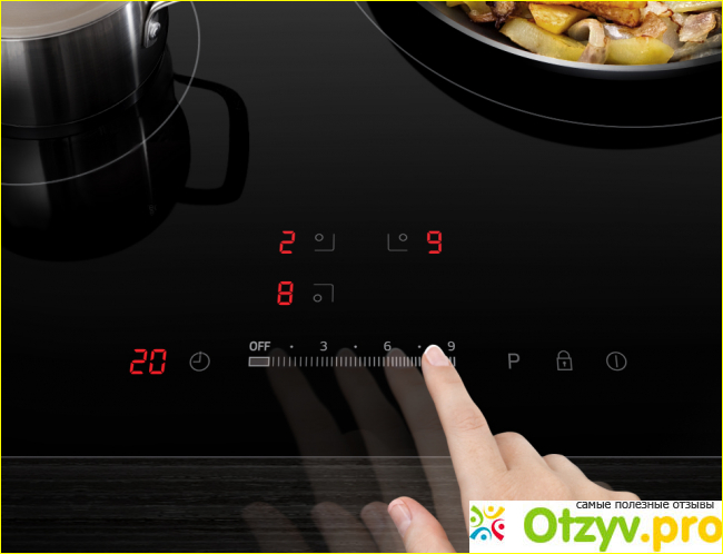 Для каждой зоны нагрева предусмотрено наличие своего сектора, таким образом вы не ошибетесь. Если вы поставили на панель посуду не того размера, то сразу получите сообщение, выскочит своеобразный значок ошибки.