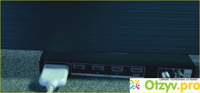 Дополнительный блок One Connect дает возможность подключать все кабели и другие устройства через него. Если раньше это приходилось мучиться сзади телевизора, то здесь в отдельном блоке это очень удобно подключать. Телевизор практически плоско висит на стене, а все провода идут от этого блока, который можно расположить в любом месте возле телевизора.
