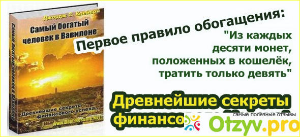 Сложно недооценить произведение Клейсона. Я считаю, что каждый, кто хочет управлять своей жизнью, а не быть рабом обстоятельств и вечным должником, должен познакомиться с этим произведением. В нашей действительности есть только один недостаток. Сложно применить на практике советы Древнего Вавилона по инвестированию. Поскольку процент по вкладам в банках России просто смешон, а рисковать, играя на бирже или с ценными бумагами, автор не советует.