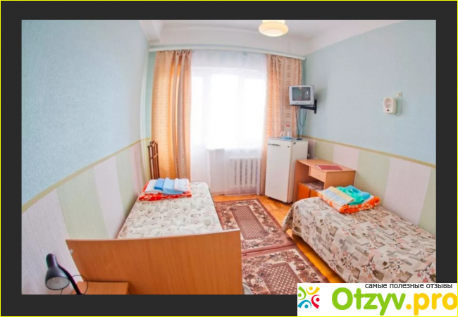 В номере чисто, кровати хорошие, телевизор не слишком новый, сантехника тоже. Уборка была ежедневно. На одного человека давали по три полотенца, неплохо. За две с половиной недели нашего проживания их меняли три раза. Окна выходили на море. Как потом я узнала, это небольшой бонус для тех людей, кто покупает путевки самостоятельно, за свои деньги. Вид был шикарный, на балконе мы встречали рассветы и закаты, слушали шум морских волн. Романтика! Днем было яркое солнце, но плотные шторы нам очень помогали, да и днем мы редко бывали в номере.